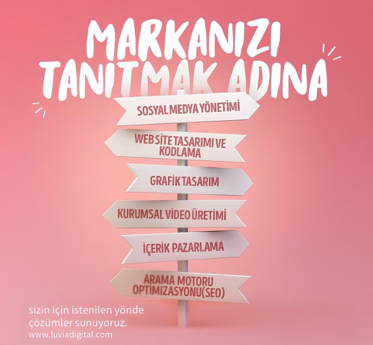 Sosyal medya yönetimi, grafik tasarım, web sitesi oluşturma ve dijital çözümler sunuyoruz.